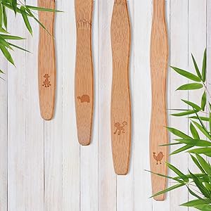 El mejor producto para la Familia – Se pueden reconocer los cepillos de dientes con los grabados del mango, para su rápida identificación con varios animales: Tortuga,Pájaro,Rana,Mono.